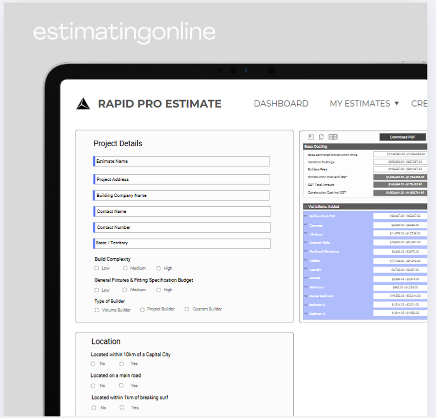 We expect Builders to prepare a detailed construction estimation through Estimatingonline prior to a site meeting. To take the next step.
